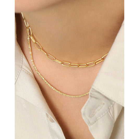 Simple Style Chain 18K Pendant Necklace unisex Clavicle Chain