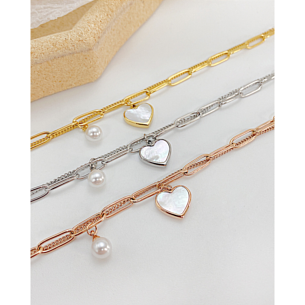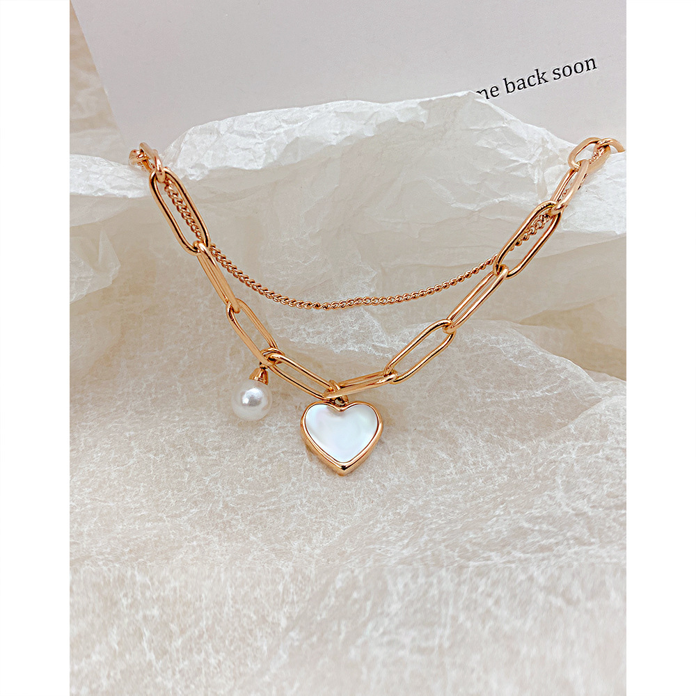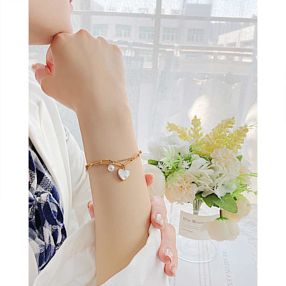 Light Luxury Double-Layer Unisex Pearl Bracelet Female Simple Fashion Chain Heart-Shaped Accessories